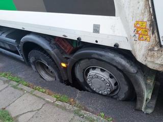 - Pod śmieciarką zapadła się jezdnia. Na miejsce zadysponowano dwa zastępy straży pożarnej. Jeden z nich wrócił już do koszar, drugi pozostaje, by zabezpieczać miejsce zdarzenia. Wezwany został sprzęt właściciela, który ma wyciągać samochód - poinformował po godzinie 8 kapitan Wojciech Kapczyński z zespołu prasowego Komendy Miejskiej Państwowej Straży Pożarnej.