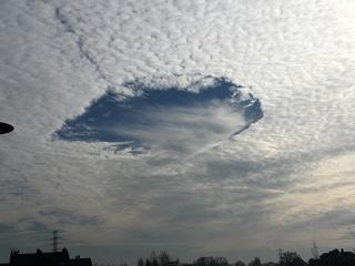 "Cavum oglądane bezpośrednio pod nim jest najczęściej koliste, z większej odległości natomiast przybiera kształt owalny, a w miarę upływu czasu zwiększa swoje rozmiary" - czytamy w opracowaniu "Nowa klasyfikacja chmur", opublikowanym w ubiegłym roku w "Przeglądzie Geofizycznym".