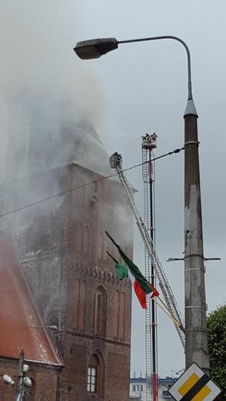 Zgłoszenie o pożarze straż pożarna otrzymała w sobotę o godzinie 18:30. Pierwsze zastępy były na miejscu po kilku minutach. Jak przekazały służby, zapaliła się drewniana konstrukcja wieży katedralnej.