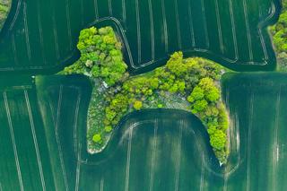 Jak zaznaczył, w tym roku rzepaku wokół zagajników nie będzie z uwagi na płodozmian. - Wcześniej był rzepak. Teraz rośnie zboże, które tworzy kontrast pomiędzy soczystymi barwami jasnej zieleni, a zboże wygląda nieco ciemniej. Z góry wygląda to pięknie - opisał.