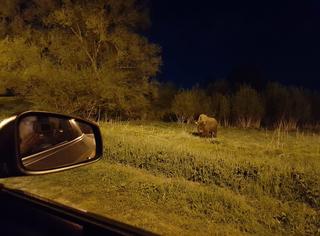 - Na drodze, którą jechaliśmy był ubytek w asfalcie. Zdaje się, że żubr pił wodę, która się tam zebrała - relacjonowała pani Joanna. - "Zapozował" do zdjęcia, po czym zaczął jeść trawę. Baliśmy się wyjść, ale przez uchyloną szybę udało mi się zrobić zdjęcia - dodała.