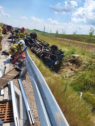 "W wyniku zderzenia dwóch pojazdów ciężarowych, jeden z nich dachował. Poszkodowane zostały dwie osoby, kierowca i pasażer znajdujący się w przewróconym pojeździe. Dzięki wykorzystaniu narzędzi hydraulicznych, strażacy uzyskali dostęp do poszkodowanych. Pasażer, który odniósł obrażenia kręgosłupa oraz liczne urazy, został przetransportowany śmigłowcem LPR. Kierowca został natomiast przetransportowany do szpitala za pomocą karetki pogotowia" - czytamy w komunikacie Ratownictwa Powiatu Ełckiego.